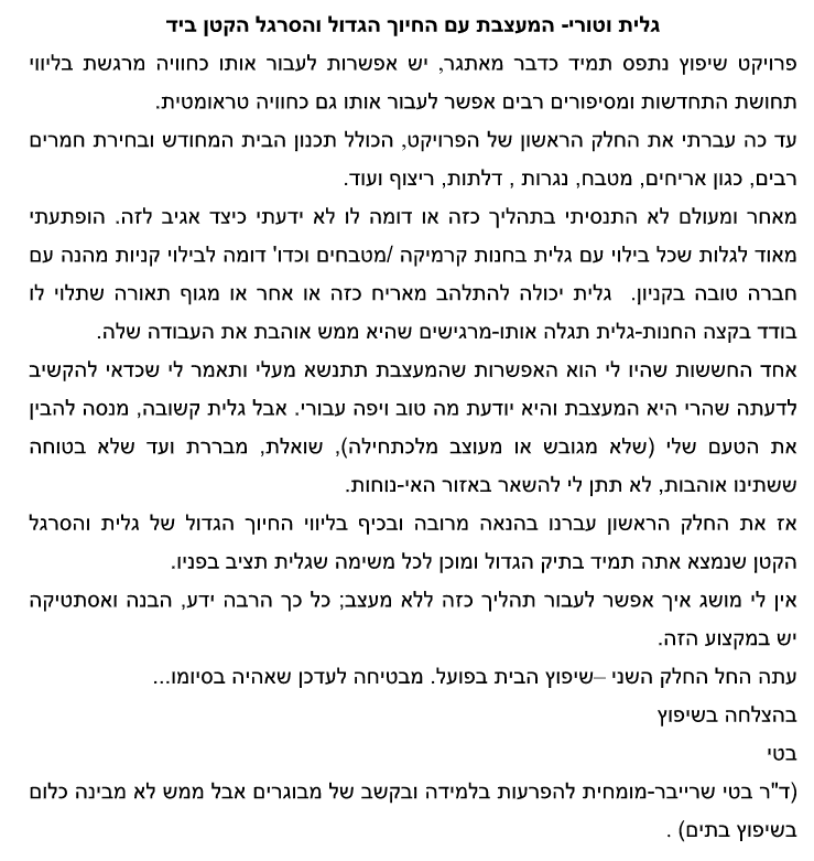 - תוכנן איזור לפינת משפחה ששם "הבלאגן"