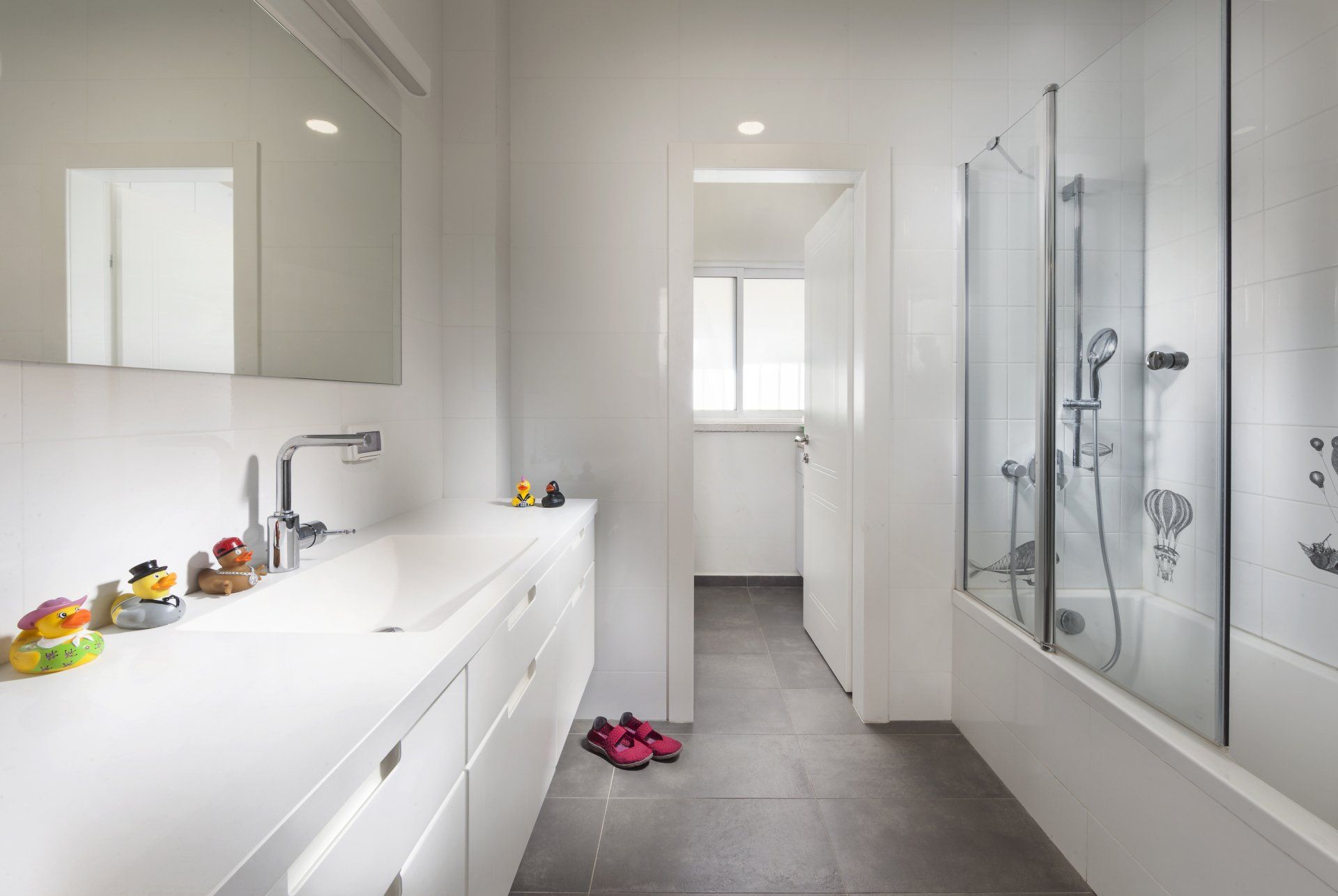 - את חדר הרחצה של ההורים הפכנו לכללי ואת הכללי, המרווח חיברנו לחדר